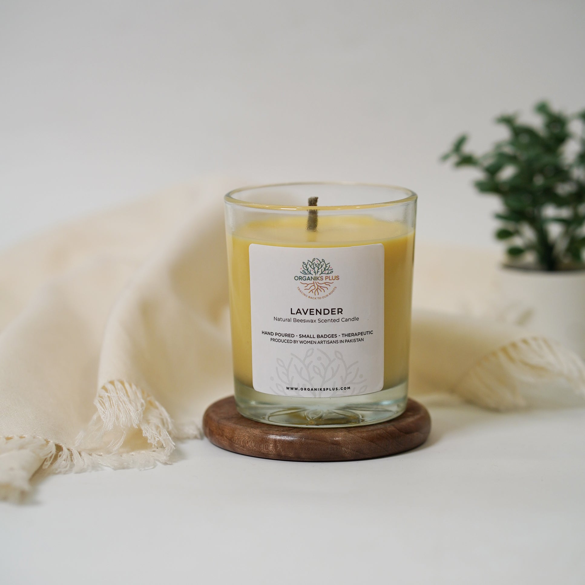 Lavender beeswax candle instantly brings calm, like a gentle breeze through lavender fields.